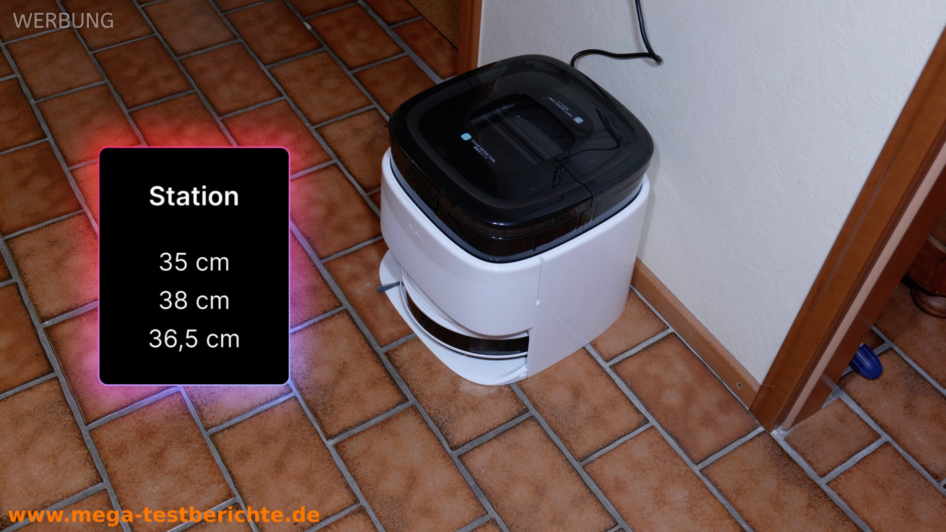 Die Station misst etwa 35 × 38 × 36,5 cm.