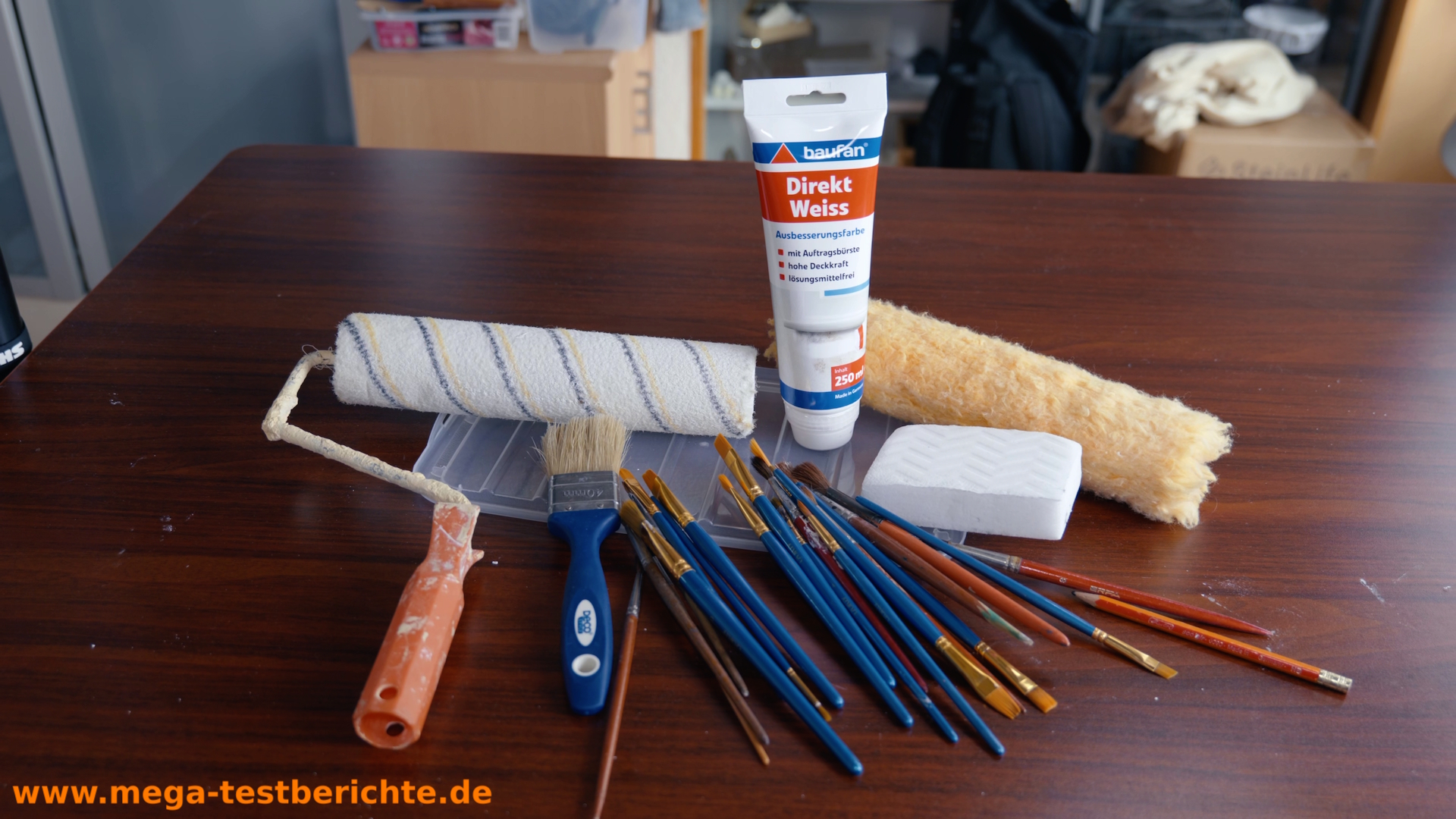 👉 Wichtig: Keine in die Tube integrierten Schwämme oder Bürsten benutzen. - Einen normalen Malerpinsel nehmen und nur die Spitze in die Farbe tauchen.