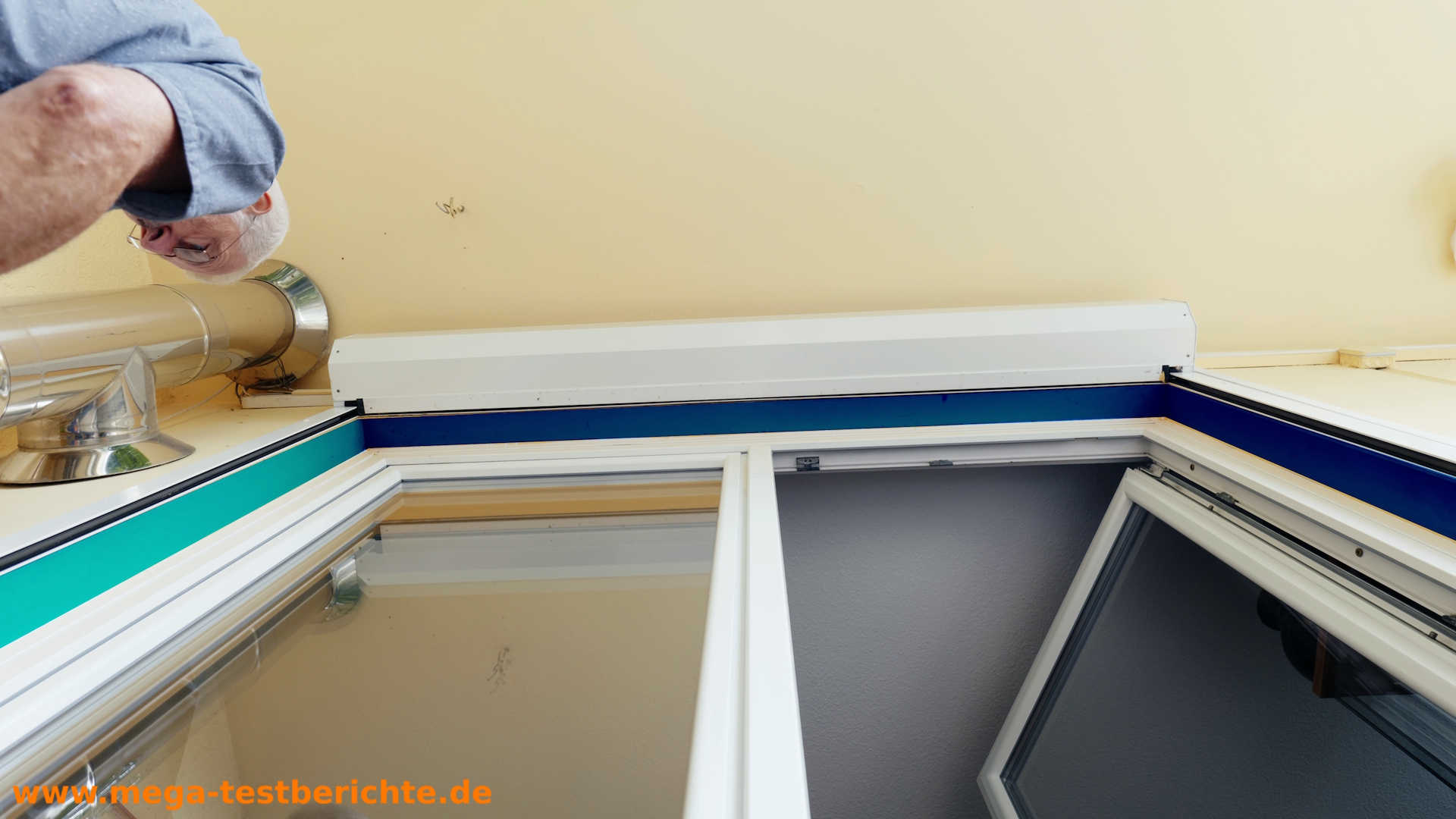 Hier wird der Rahmen außen auf die Laibung geschraubt.