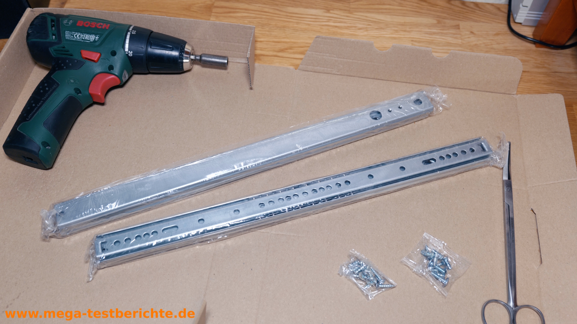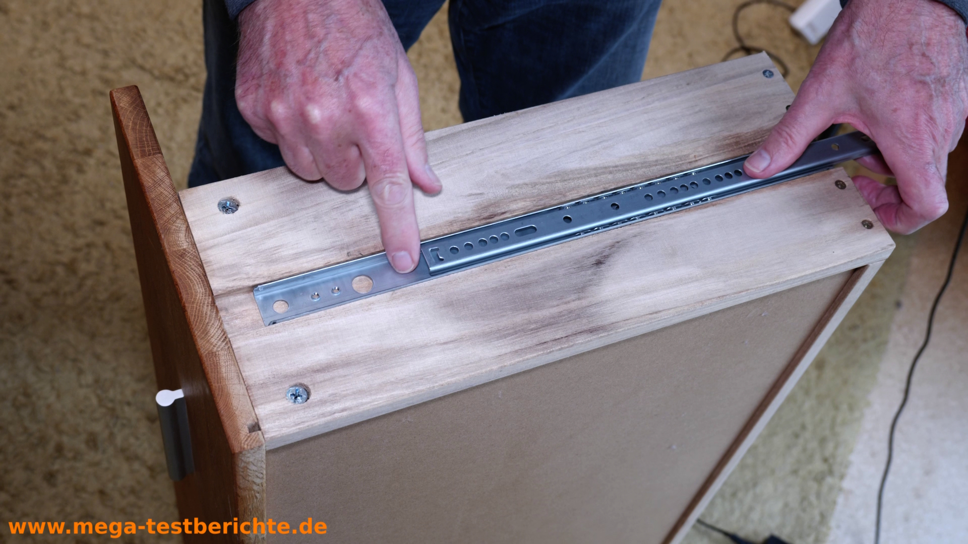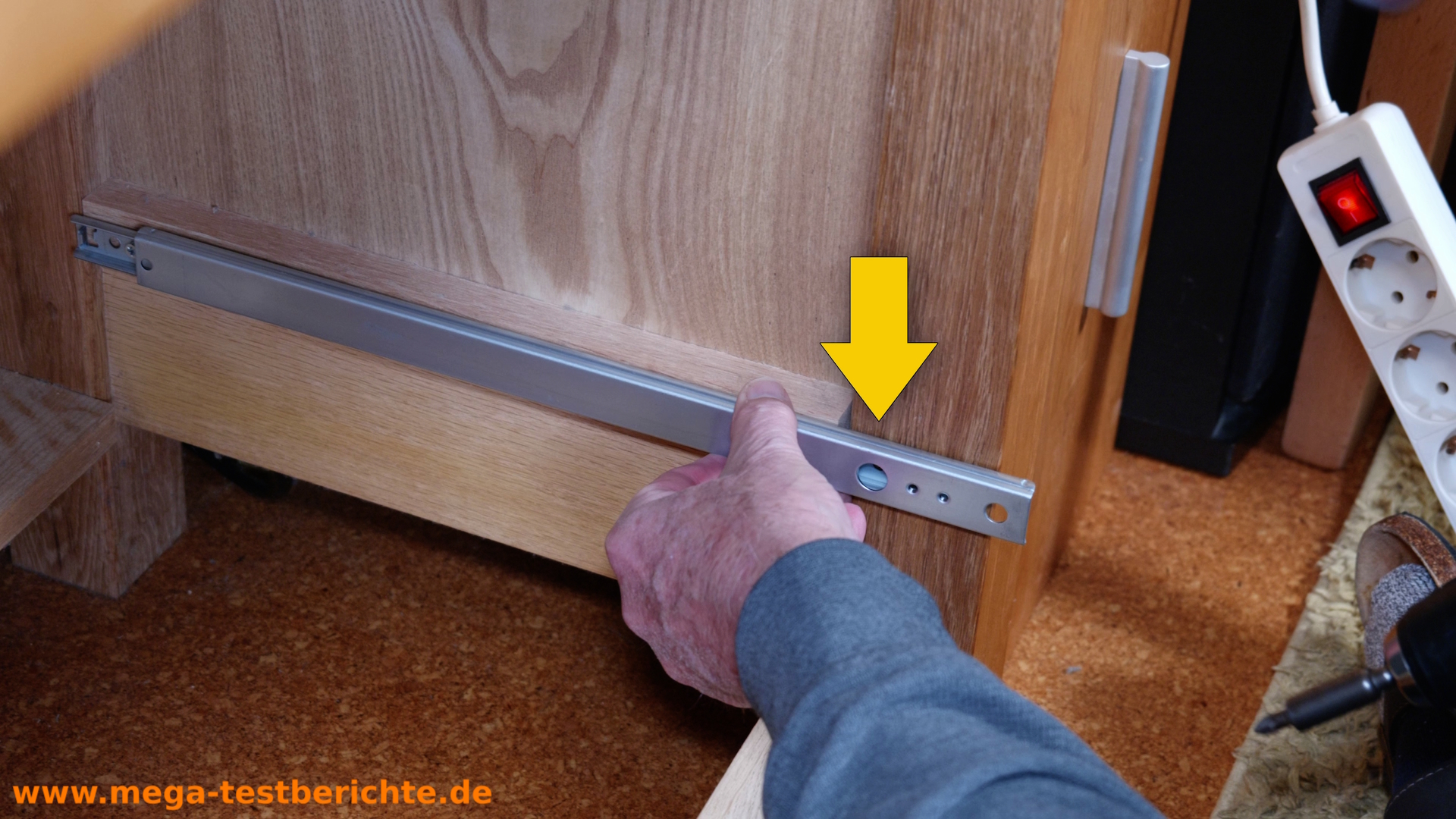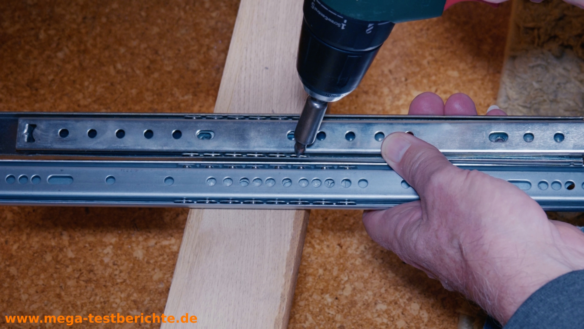 - Achte darauf, dass die Schiene ganz ausgezogen ist, bevor du sie abschraubst.“