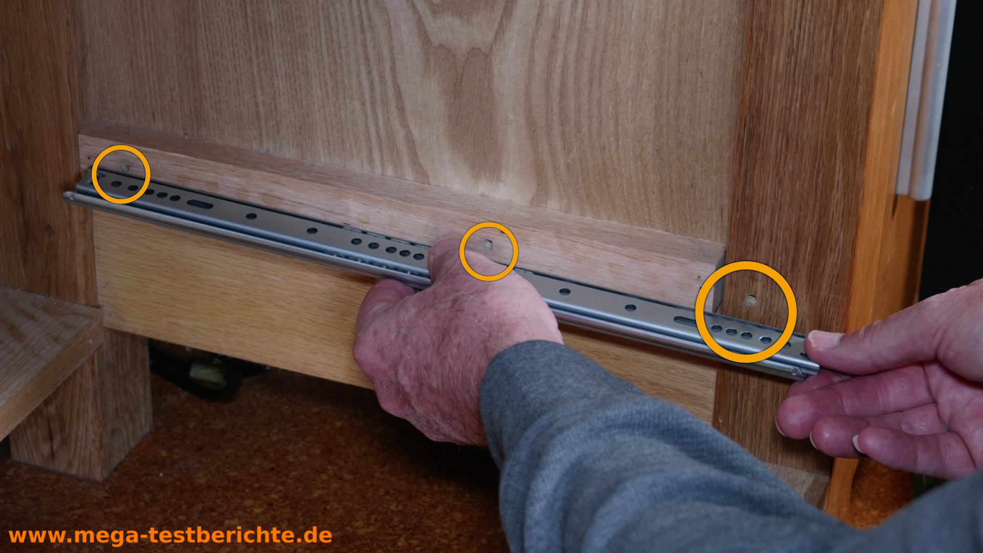 - „Die Schiene ist mit mehreren Schrauben befestigt – bei mir sind es drei.