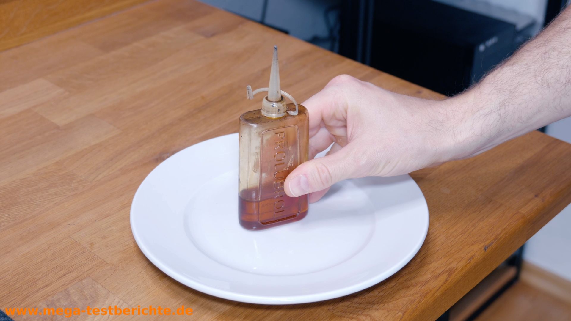 Wichtig: Ölreste danach abwischen, damit sie nicht auf den Boden tropfen.
