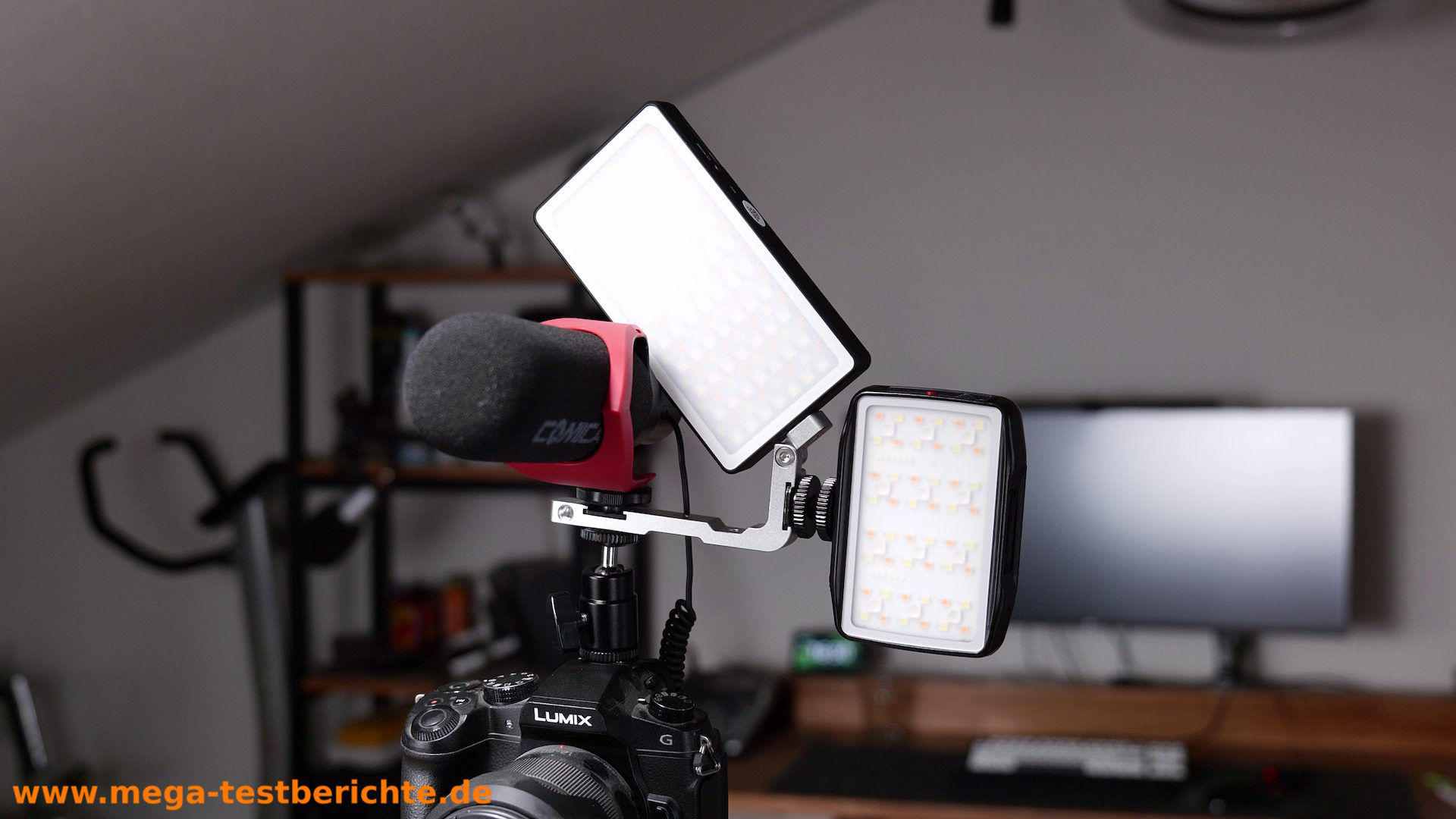 - Zwei 1/4-Zoll-Gewinde + zusätzlicher Blitzschuh auf dem Arm