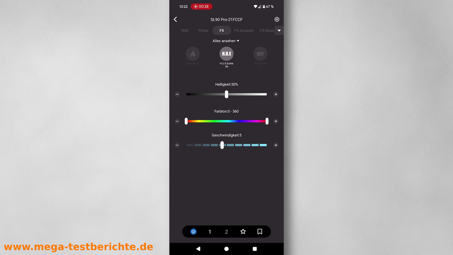 - Der letzte Modus sind Licht-Effekte.