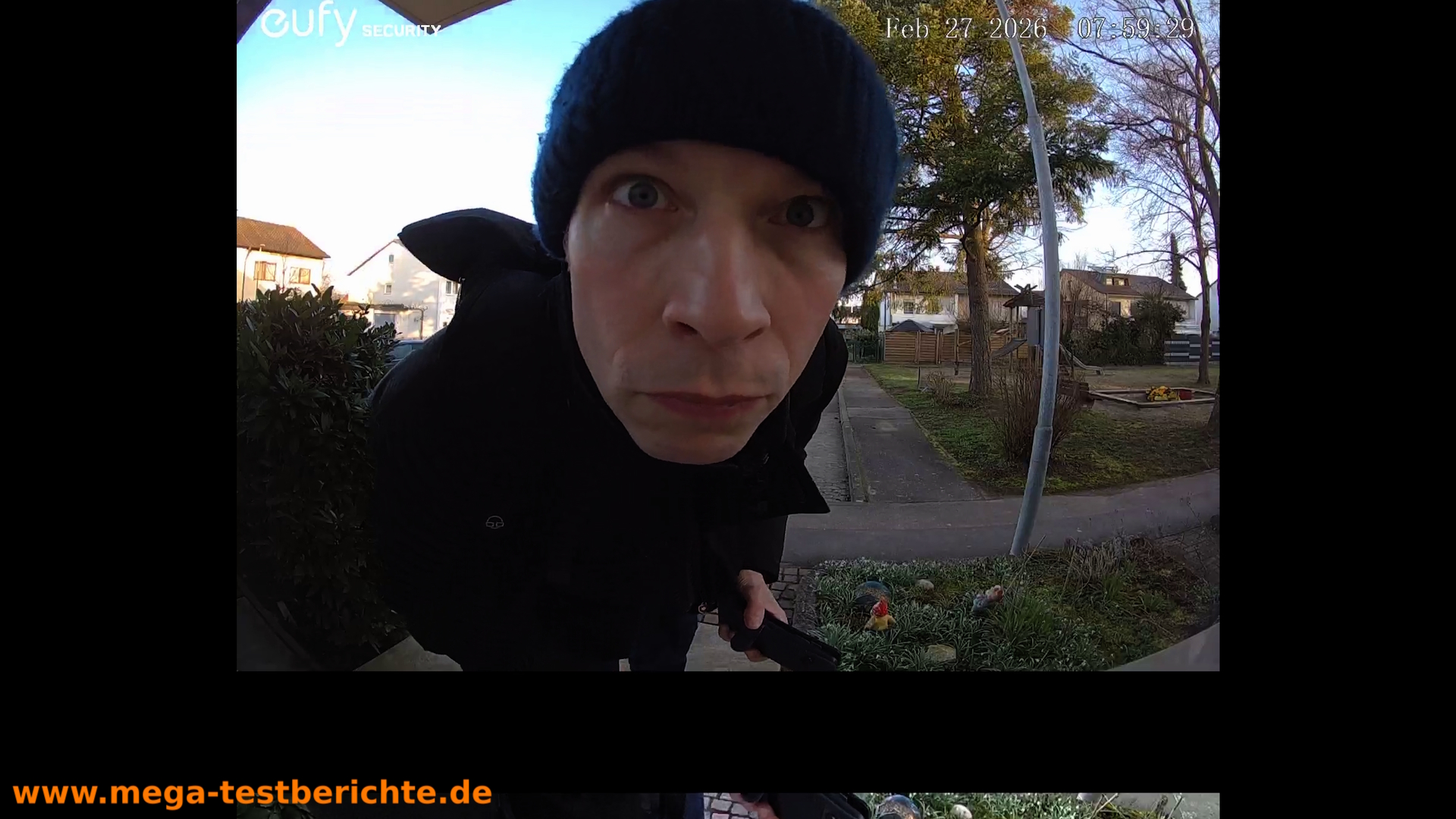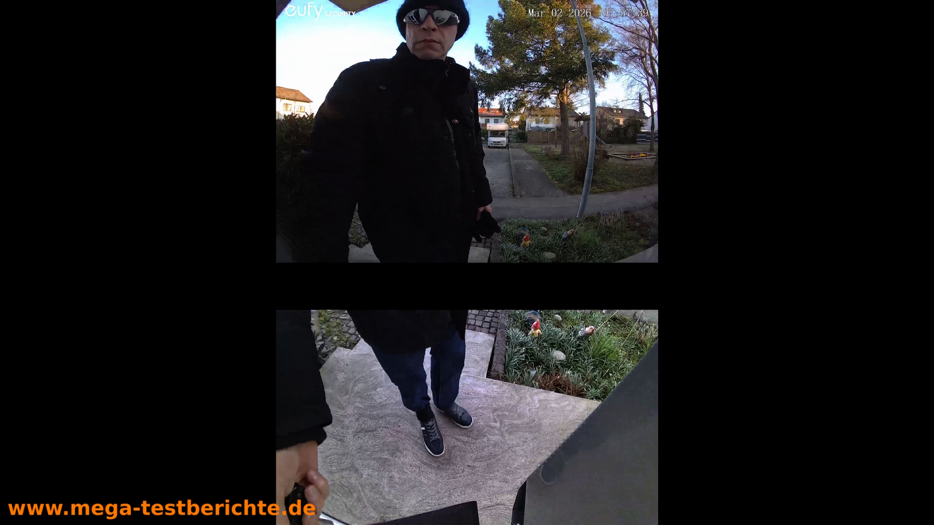 Die zweite Kamera ist nach unten gerichtet und überwacht den Bodenbereich direkt vor der Haustür.