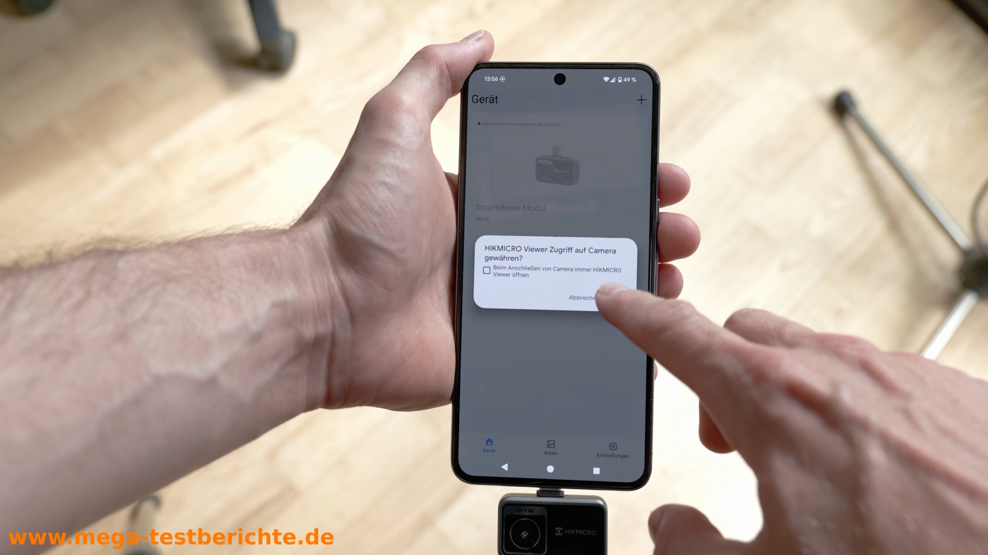 - Kamera ins Smartphone stecken, Plus drücken, bestätigen, fertig