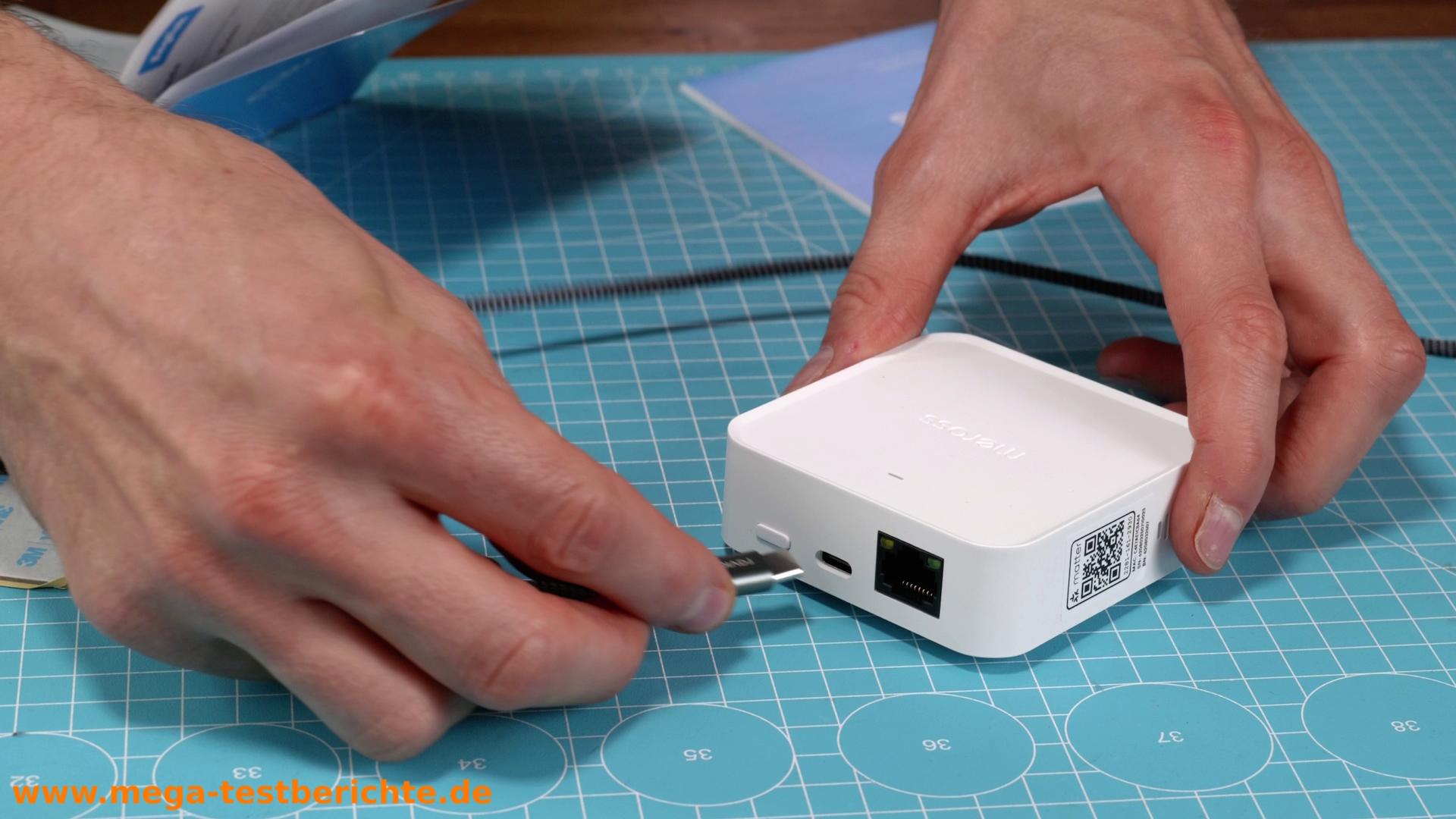 - Hub an den Strom anschließen – er blinkt grün und orange.