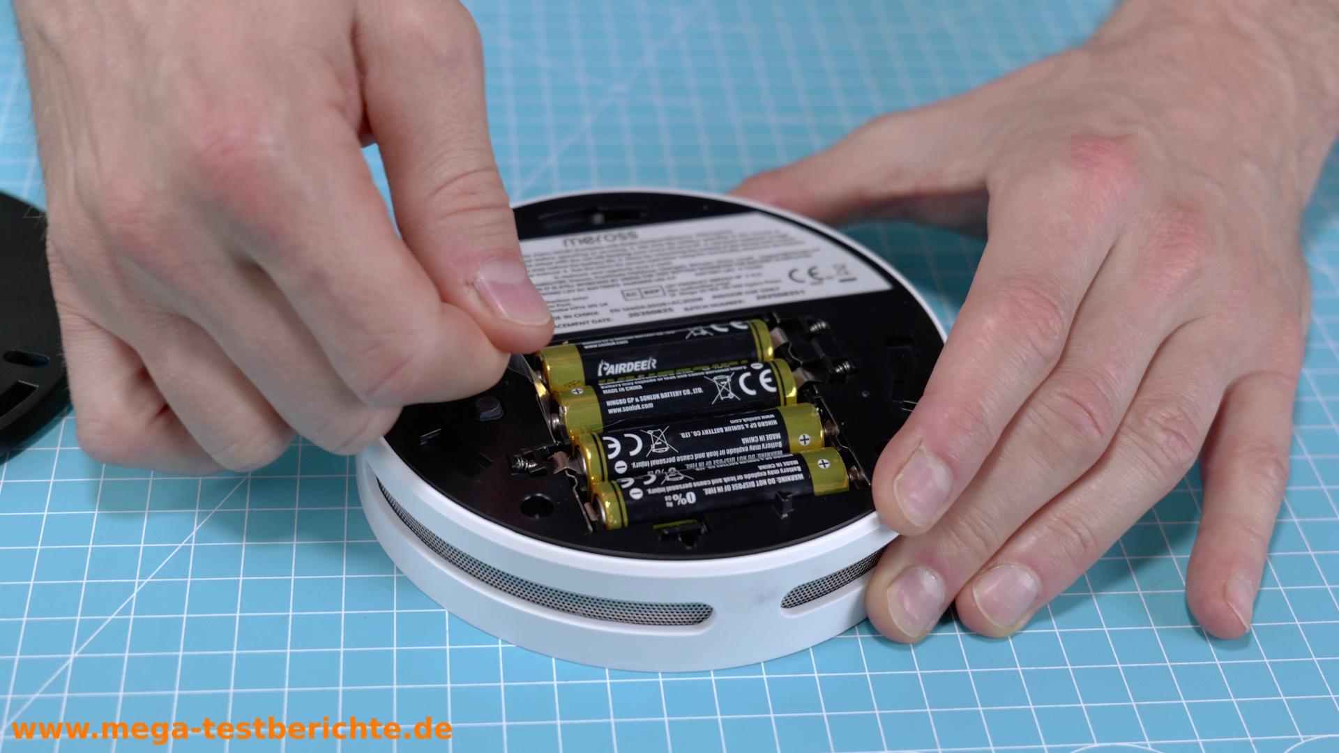 - Batterien: Vier AA-Batterien halten ca. 3 Jahre, Laufzeit des Melders: 10 Jahre.
