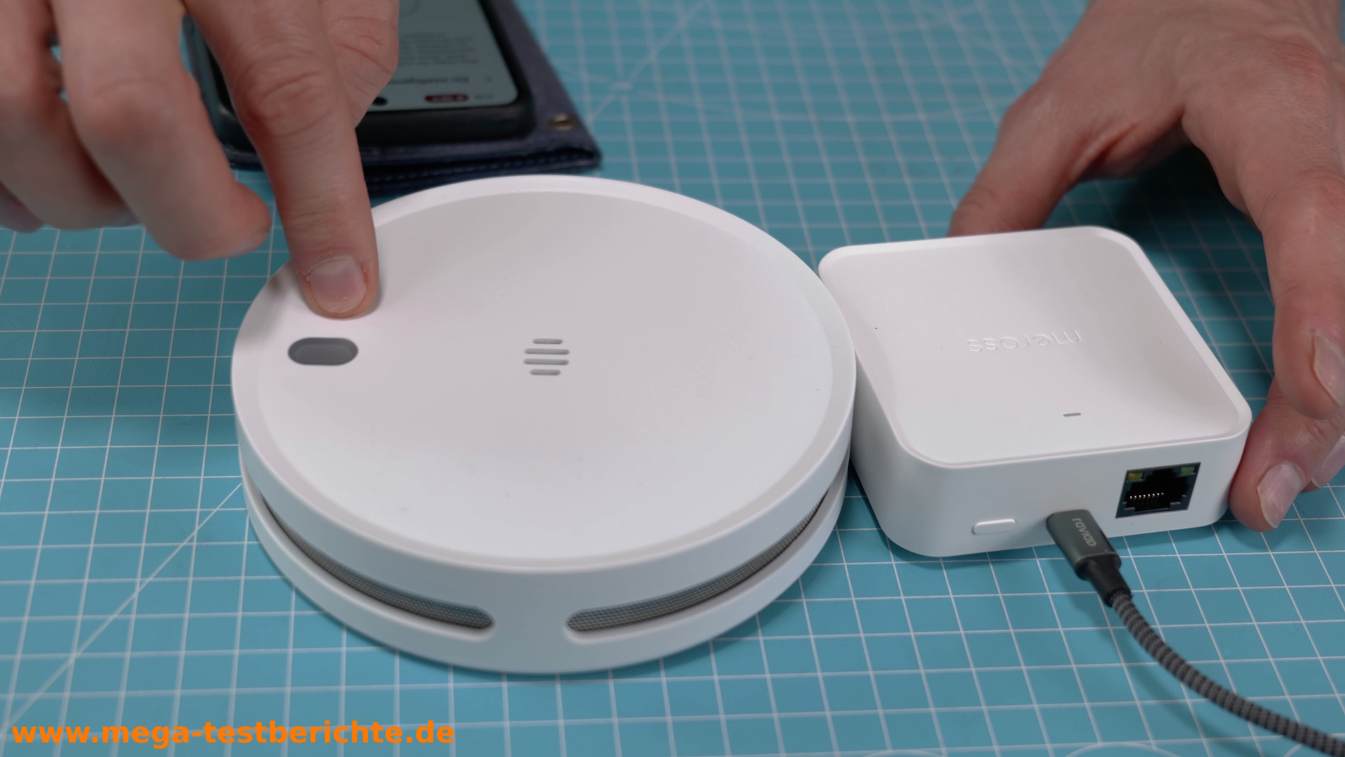 Doch Achtung: Hier gibt es eine kleine Falle. War ich zu langsam, war der Hub nicht mehr im Pairing-Modus. Lösung: Zweimal die Taste am Hub drücken, dreimal am Melder – erst dann klappt’s.