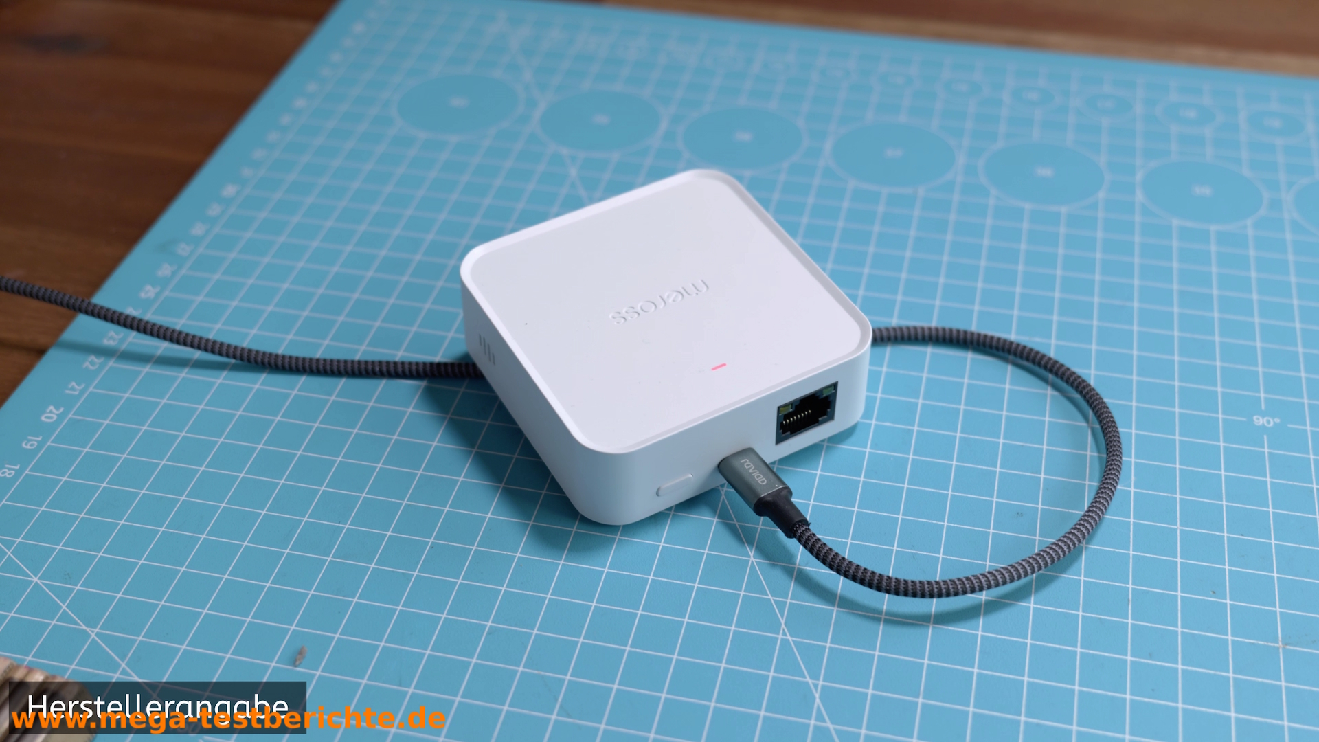 Der Meross-Hub ist kompakt (7,5 × 7,5 cm) und verwaltet bis zu 32 Geräte – von Thermostaten über Türsensoren bis zu Rollladensteuerungen.