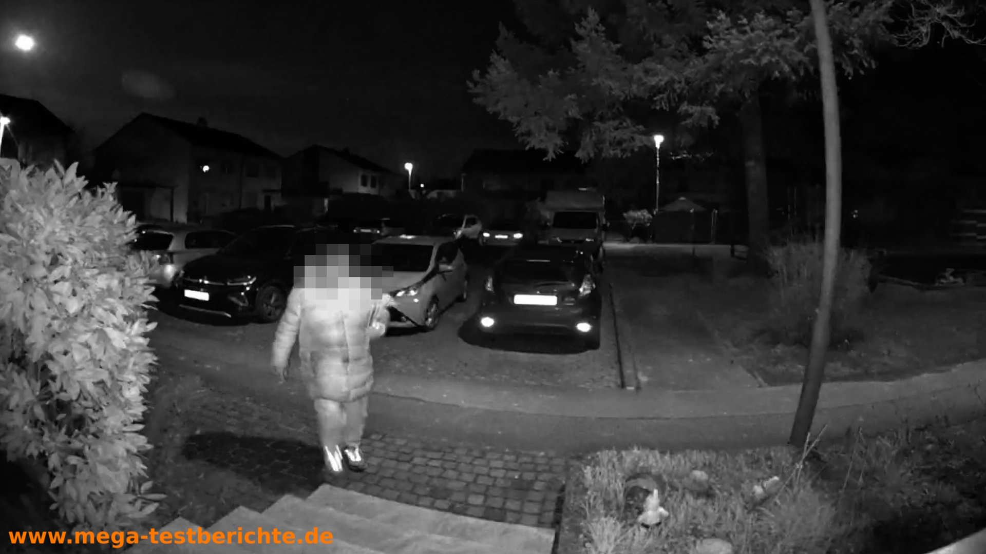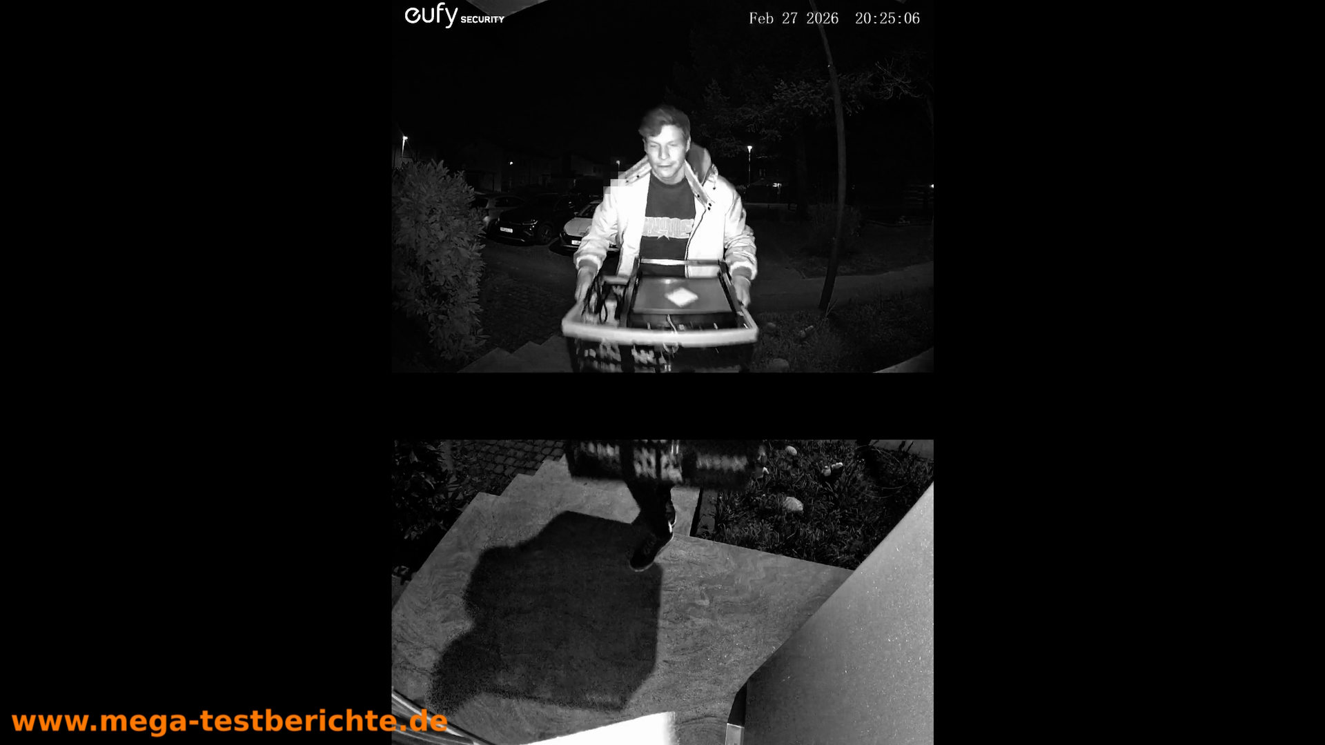 Die zweite Kamera ist nach unten gerichtet und überwacht den Bodenbereich direkt vor der Haustür.