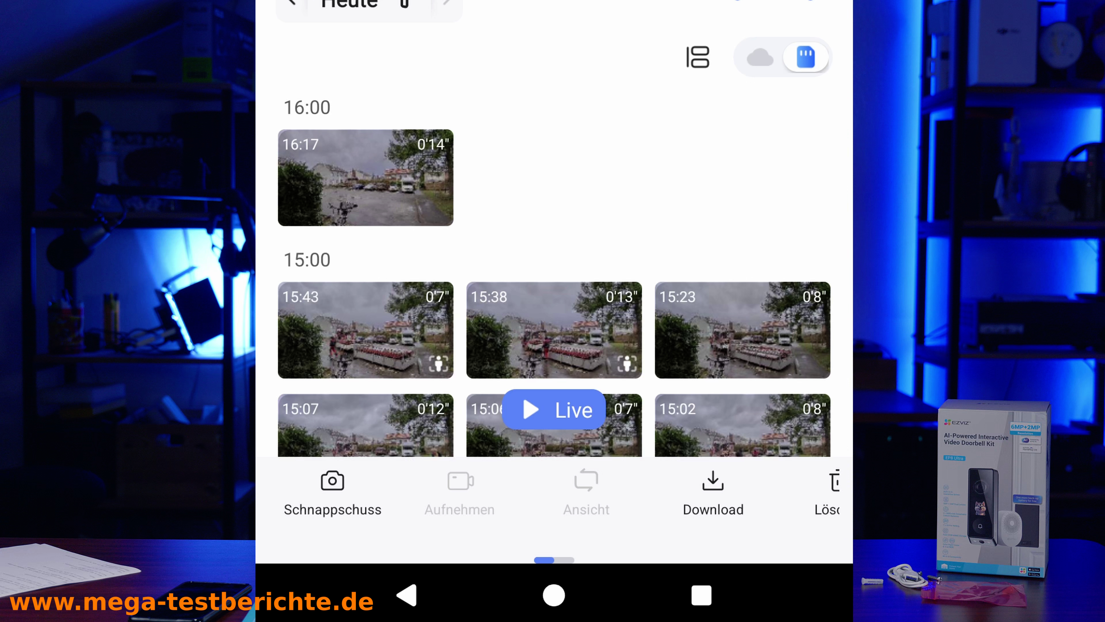 Die EP8 Ultra speichert Videos wahlweise: