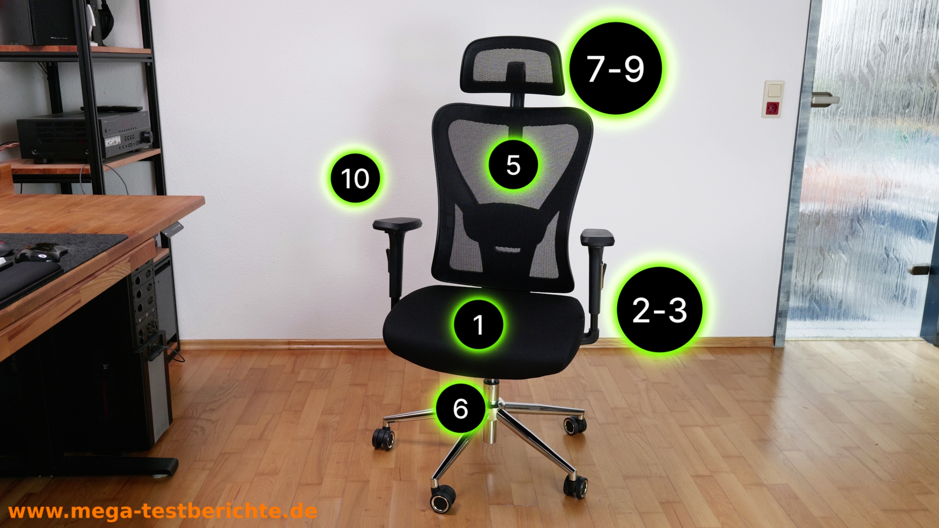 Der Lutivo Alpha bringt insgesamt 10 ergonomische Funktionen mit. Klingt erstmal gut – aber entscheidend ist, wie gut diese in der Praxis funktionieren.