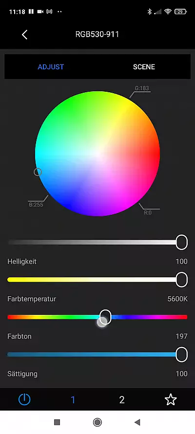 Bei nicht RGB-Lampen haben wir übrigens oft den Zusatz "Bi". Dann ist die Hälfte der LEDs meist weis und die andere gelb. Damit ihr das Licht sehen könnt, habe ich einen Live-Lichttest mit der App gemacht, siehe Video.