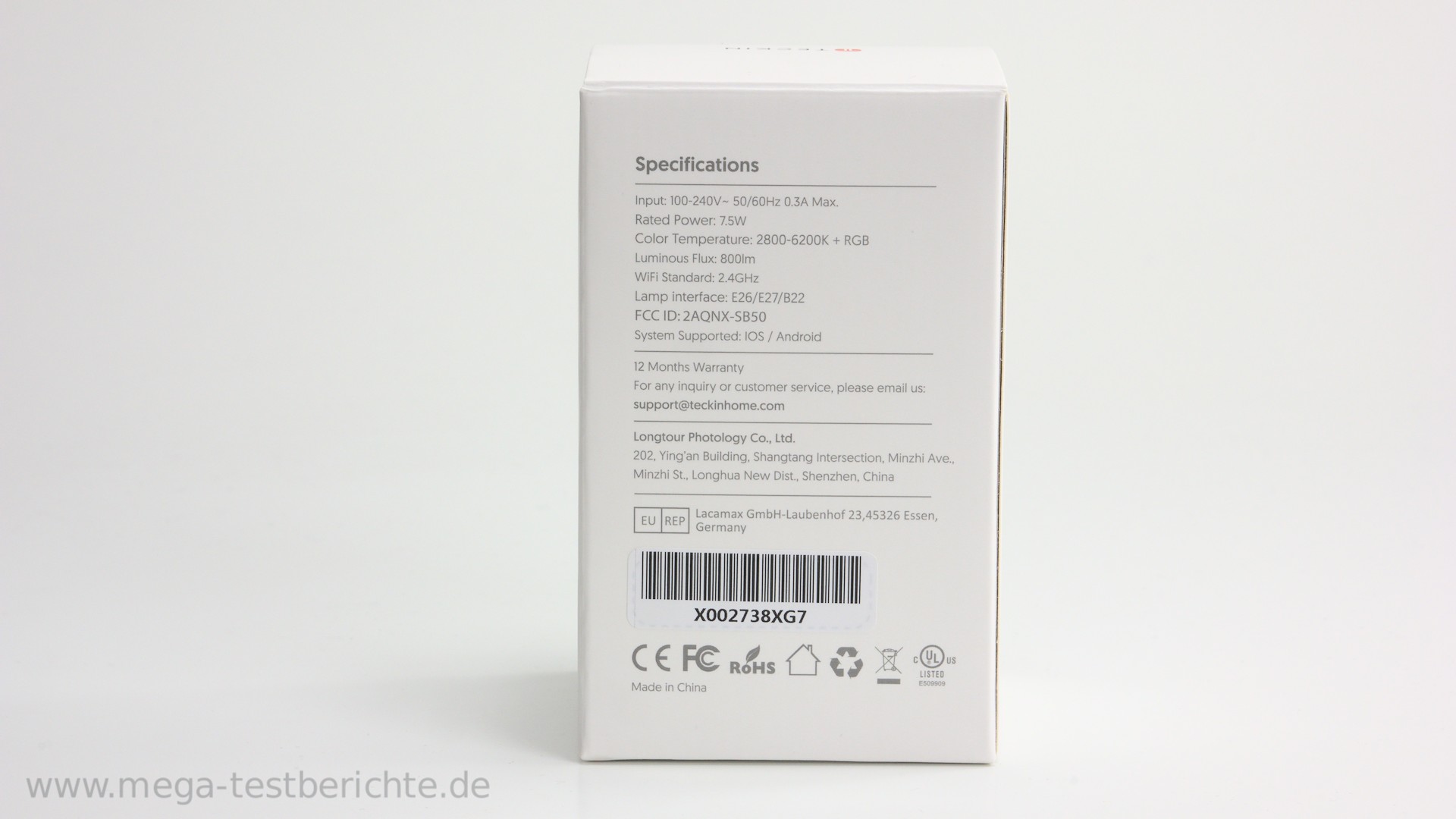 Das Gewicht der Lampe liegt bei 104 Gramm, womit sie deutlich schwerer ist als eine normale Lampe. Das liegt eben auch daran, das sich mehr Elektrik in der Lampe befindet unter anderem die LED-Steuerung, WLAN-Chip und auch der Speicher der Software.
