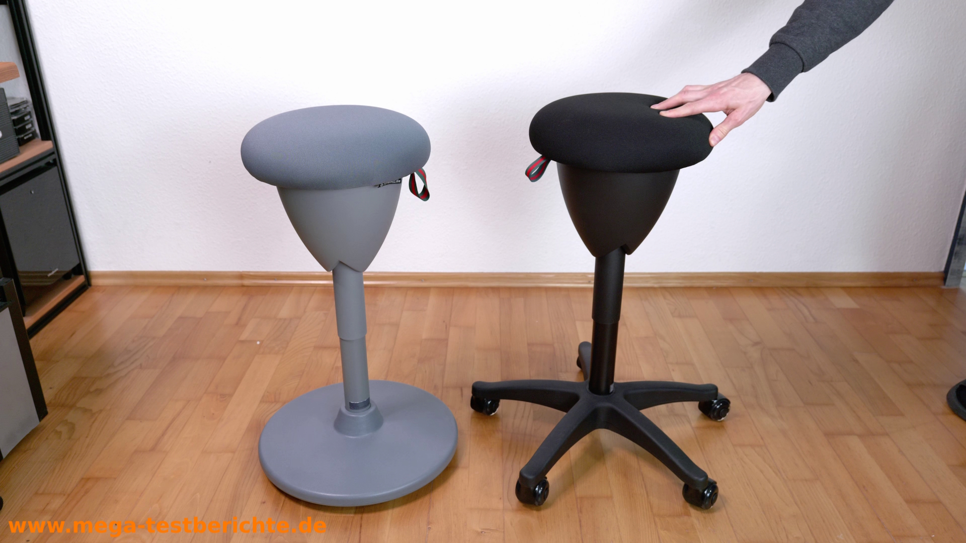 Der Rollhocker sieht oben fast identisch aus, aber unten steht er auf leisen Softrollen.